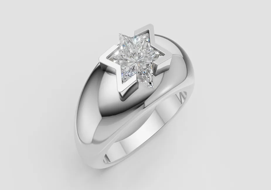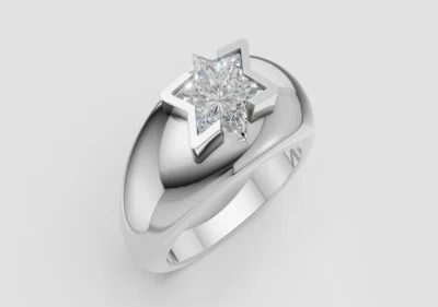 At its center is our signature Star of David Diamond, precision-cut to maximize brilliance while honoring symmetry and symbolism. The clean lines of the setting allow the diamond to stand confidently on its own, catching light from every angle and making a statement that is both powerful and refined.