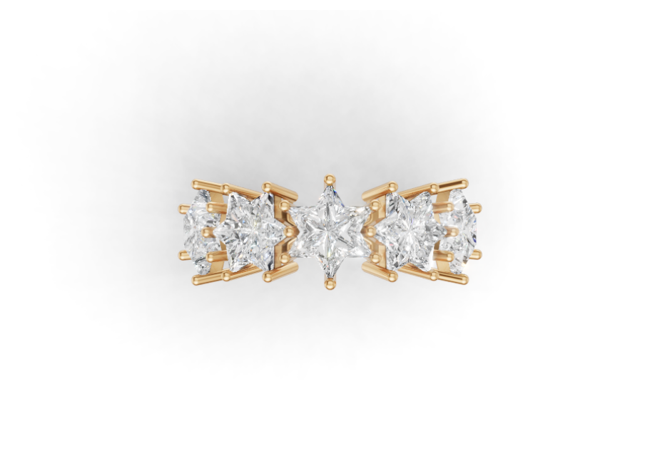 Each Star of David Cut® diamond is precision-crafted to emphasize depth, geometry, and exceptional sparkle, transforming the ring into a modern heirloom with unmistakable presence. Designed to sit comfortably on the hand, the half-eternity setting delivers maximum radiance without sacrificing wearability. Crafted in your choice of gold or sterling silver, this ring is made to honor legacy: what has been built, what endures, and what will be passed forward.