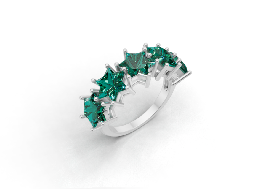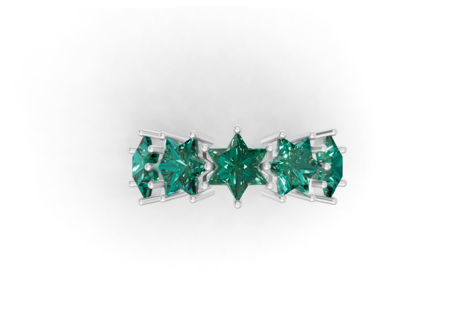 The Half Eternity Ring is reimagined with five Star of David Cut® semi-precious stones, each measuring 8.7 mm, creating a continuous flow of color, light, and meaning. As part of Leya’s Unbreakable Legacy Collection, this design represents connection across time: five stones aligned as a symbol of strength, unity, and resilience.