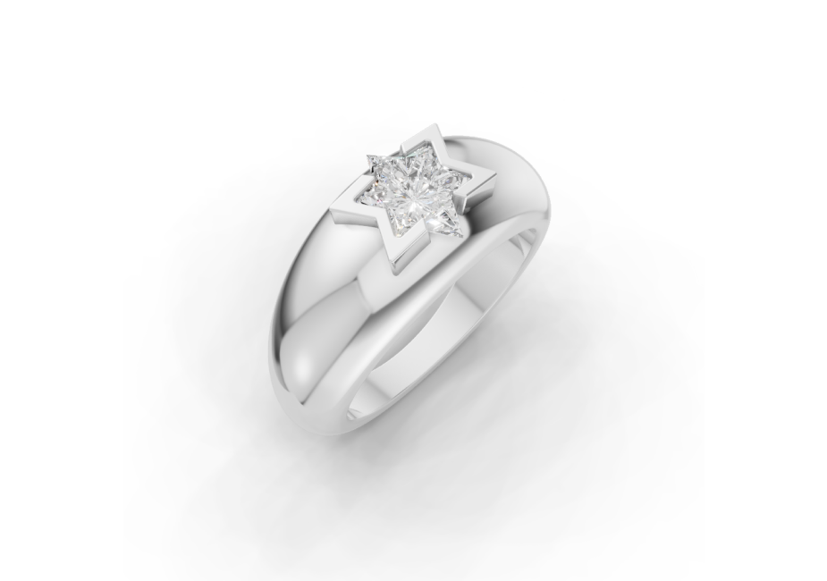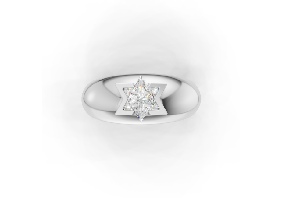 At its center is our signature Star of David Cut™ precision-cut to maximize brilliance while honoring symmetry and symbolism. The clean lines of the setting allow the diamond to stand confidently on its own, catching light from every angle and making a statement that is both powerful and refined.