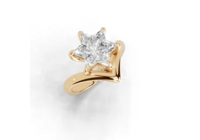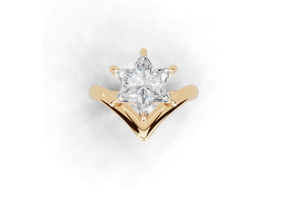 The OR Ring reimagines the Star of David Cut® diamond through a sculptural, contemporary lens. Its flowing metal form cradles the diamond in a way that highlights both brilliance and artistry, allowing light to move freely across every facet.