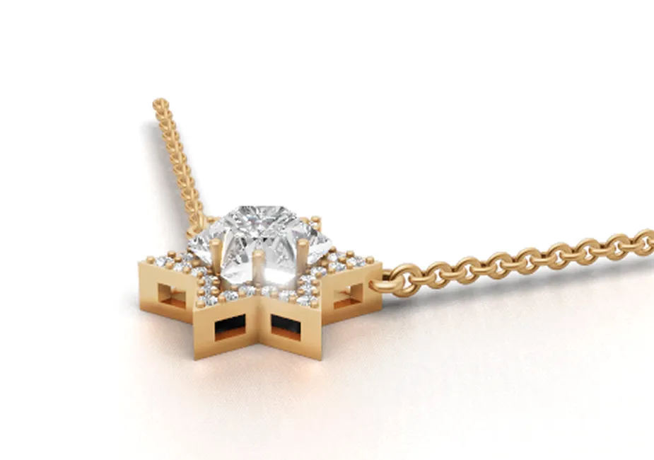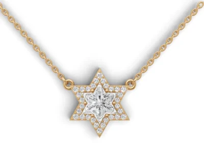 Elevate your jewelry collection with the exquisite Radiant Star Pendant. This breathtaking pendant is crafted with precision and adorned with dazzling diamonds, forming a radiant six-pointed star surrounding our Star of David Diamond in the center. Set in luxurious gold, white gold, or rose gold, the pendant combines modern sophistication with timeless elegance, making it a standout piece for any occasion.