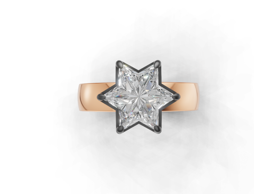 The Zev Ring from Leya’s Unbreakable Legacy Collection is a bold expression of strength, identity, and enduring legacy. At its center is our proprietary Star of David Cut® stone, expertly crafted to reflect light through precise geometry and powerful symmetry. The sculptural prong setting lifts the stone, allowing light to enter from every angle and enhancing brilliance while preserving a strong architectural presence.